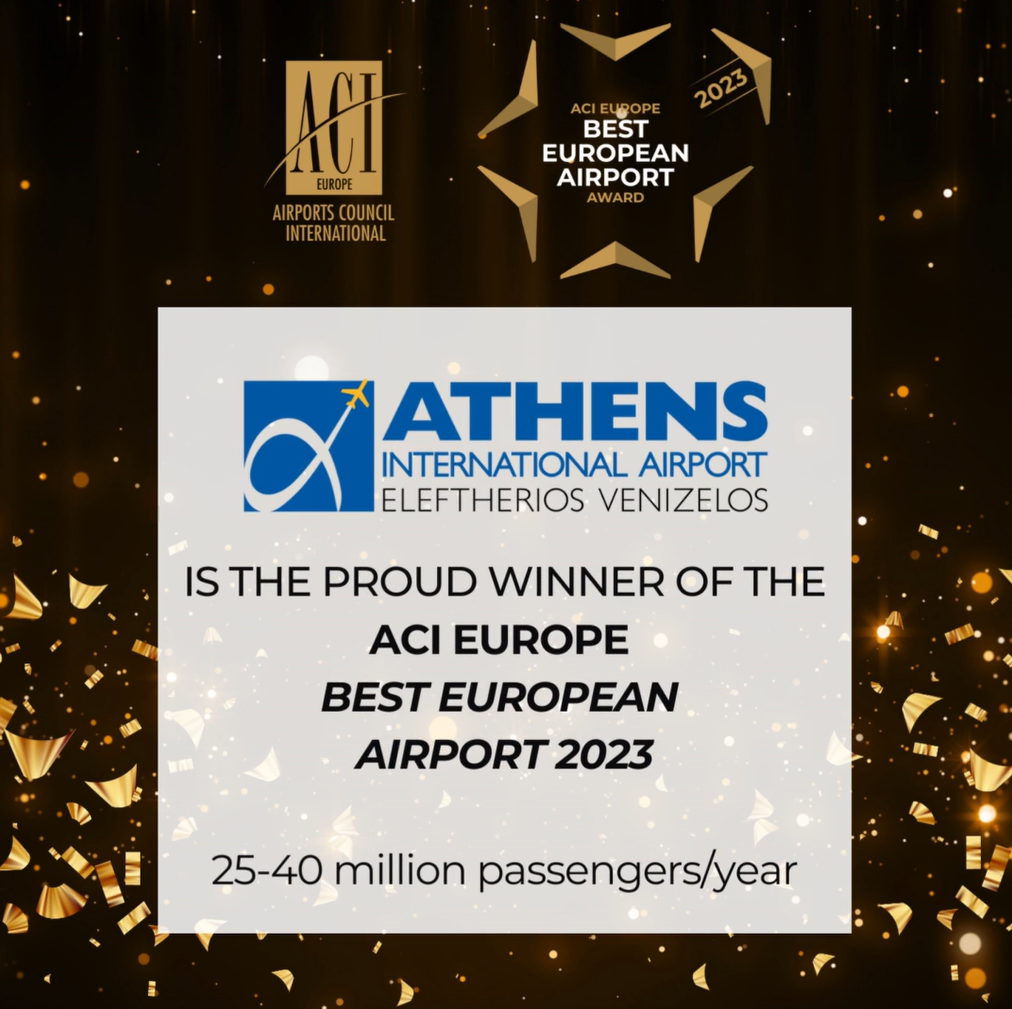 ACI EUROPE Best Airport Award για το αεροδρόμιο της Αθήνας στην κατηγορία 25-40 εκ. επιβατών