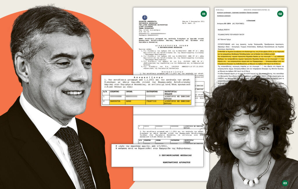 01 Η διαπιστωτική πράξη του τότε περιφερειάρχη Θεσσαλίας Κώστα Αγοραστού, τον Ιανουάριο του 2011, για τη μετάταξη της Ανθής Βακράτσα (03) και άλλων δικηγόρων από τις Νομαρχιακές Αυτοδιοικήσεις Λάρισας, Μαγνησίας και Τρικάλων στην Περιφέρεια Θεσσαλίας. Αργότερα η Ανθή Βακράτσα προήχθη σε προϊσταμένη της νομικής υπηρεσίας της περιφέρειας 02 Η απόφαση του Αρειου Πάγου εν έτει 2019 σε υπόθεση στην οποία ο τότε περιφερειάρχης, δηλαδή ο Κώστας Αγοραστός, εκπροσωπήθηκε από την πληρεξούσια δικηγόρο του, Ανθή Βακράτσα. Δηλαδή την αδελφή της εφέτου Φανής Βακράτσα, η οποία εκδίκασε δύο υποθέσεις με κατηγορούμενο τον Κ. Αγοραστό, τον Οκτώβριο του 2024 και την περασμένη Πέμπτη, 9 Ιανουαρίου 2025