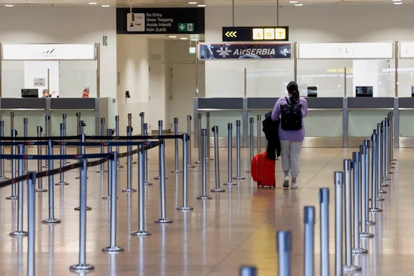 Ένας επιβάτης περπατά στην κύρια αίθουσα του αεροδρομίου των Βρυξελλών κατά τη διάρκεια μιας εθνικής απεργίας, στο Zaventem κοντά στις Βρυξέλλες, Βέλγιο, 9 Νοεμβρίου 2022. REUTERS/Yves Herman