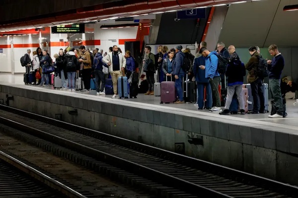 Οι επιβάτες περιμένουν ένα από τα λίγα τρένα στο σιδηροδρομικό σταθμό του αεροδρομίου των Βρυξελλών κατά τη διάρκεια μιας εθνικής απεργίας, στο Zaventem κοντά στις Βρυξέλλες, Βέλγιο, 9 Νοεμβρίου 2022. REUTERS/Yves Herman