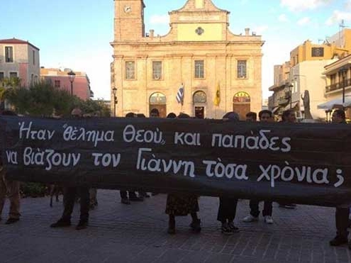 Διαμαρτυρία στη Μητρόπολη Χανίων για την εμπλοκή ιερέων στον βιασμό του 19χρονου