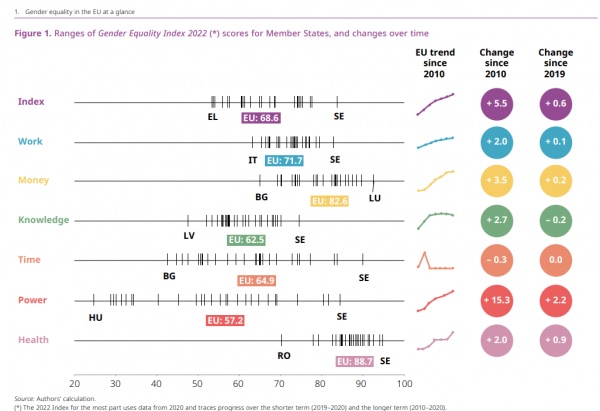 Ως γενικό συμπέρασμα, ο Δείκτης Ισότητας των Φύλων παρακολουθεί την οδυνηρά αργή πρόοδο της ισότητας των φύλων στην ΕΕ από το 2010, κυρίως λόγω της προόδου στη λήψη αποφάσεων.