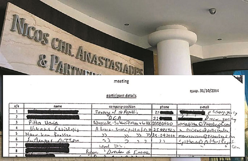 Η εφημερίδα «Πολίτης» παρουσιάζει σήμερα το έγγραφο από τα πρακτικά της εν λόγω συνάντησης που έγινε το Σεπτέμβριο του 2014 όπου δεν γινόταν ξεκάθαρη η ταυτότητα των δύο δικηγόρων.