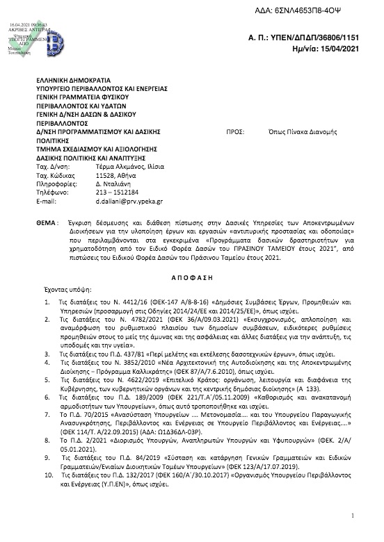 Στην Διαύγεια είναι ανηρτημένο το ποσό που η κυβέρνηση διέθεσε στους δήμους της χώρας για πυροπροστάσια. Το ποσό αυτό ανέρχεται σε 16.910.000.