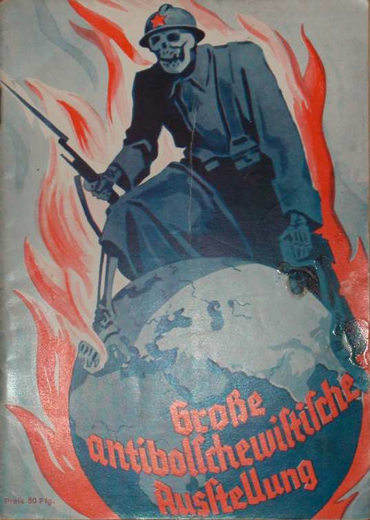 Aφίσα για την αντικομμουνιστική ναζιστική προπαγανδιστική έκθεση του 1937 “Bolschewismus ohne Maske” (“Μπολσεβικισμός χωρίς μάσκα”) που διοργάνωσε το Ναζιστικό Κόμμα στο Βερολίνο.