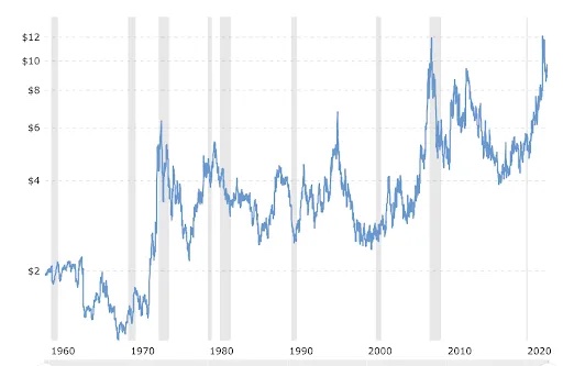 Σύμφωνα με το διάγραμμα, στο παρελθόν η μικρότερη τιμή του σίτου ήταν $2,5 ανά bushel τον Ιούλιο του 1999 και η υψηλότερη τιμή ήταν τον Μάρτιο του 2008 στα $12. Τον Ιανουάριο του 2021 η τιμή ήταν $6, τον Φλεβάρη του 2022 η τιμή έφτασε στα $12, δηλαδή διπλασιάστηκε. Σήμερα η τιμή έχει υποχωρήσει ελαφρά στα $9,5 όπως δείχνει το διάγραμμα. Οι τιμές αυξήθηκαν και πάλι από τον Σεπτέμβριο-Οκτώβριο, καθώς έρχονται στην παγκόσμια αγορά οι φετινές σοδιές σιτηρών, οι οποίες περιλαμβάνουν το υψηλό κόστος παραγωγής εξ αίτιας της αύξησης των τιμών των σπόρων, των λιπασμάτων των ζιζανιοκτόνων και της ενέργειας.