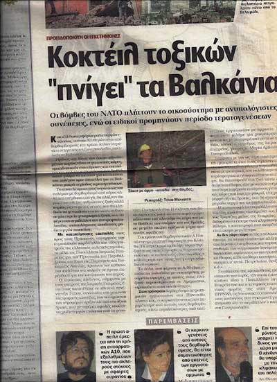 Ήταν 1999 σε εξέλιξη η επίθεση του ΝΑΤΟ κατά της Γιουγκοσλαβίας όταν πληροφορηθήκαμε μέσω e mail (την εποχή κατά την οποία δεν είχαν οι δημοσιογράφοι) ότι επίκειται επίθεση με όπλα Απεμπλουτισμένου Ουρανίου (που παραγόντουσαν από τα απόβλητα των πυρηνικών εργοστασίων) και στείλαμε με φαξ το Δελτίο Τύπου.