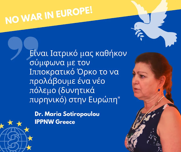 Μέσα στην καταιγίδα σκόπιμης παραπληροφόρησης, που συσκοτίζει κάθε πόλεμο και παρά τις πραγματικές αντιθέσεις αντιλήψεων, που είναι οι αιτίες του πολέμου έχουμε καθήκον σαν γιατροί να κρατήσουμε αυστηρά ουδετερότητα και να αγκαλιάσουμε κάθε τραυματία. Ο Ιπποκράτης μας δίδαξε ότι πρέπει να προλάβουμε τη νόσο ή να προσπαθήσουμε να θεραπεύσουμε τις πληγές. Το κακό με τα πυρηνικά είναι ότι η Ιατρική είναι ανήμπορη να δράσει αποτελεσματικά σε περίπτωση πυρηνικού πολέμου. Όπως απέδειξε και η πανδημία του COVID 19 τα Συστήματα Υγείας δε μπορούν να αντέξουν τόση πίεση. Γιαυτό και πρέπει οπωσδήποτε να προλάβουμε πριν είναι πολύ αργά.