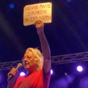 Παράλληλα, ο Γιάννης Μάγγος καταγγέλλει πως η εισαγγελέας προτείνει «να διαταχθεί η αποβολή από την παράσταση προς υποστήριξη της κατηγορίας του Ιωάννη Μάγγου και της Αικατερίνης-Ευδοξίας Μουρτζοπούλου», με αποτέλεσμα οι δικηγόροι να μην έχουν δικαίωμα αγόρευσης στο δικαστήριο.