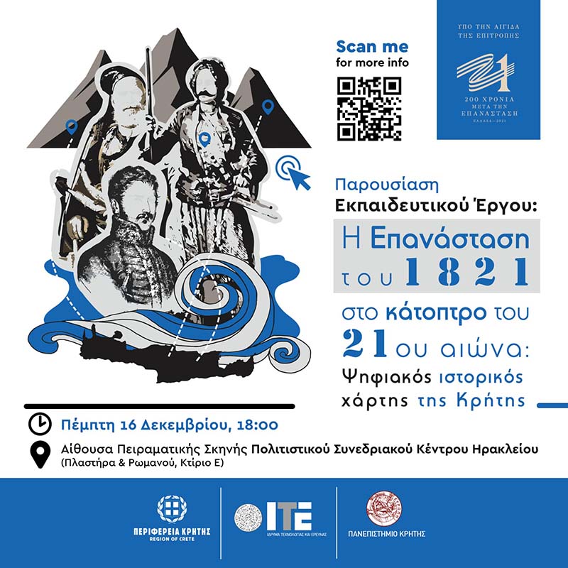 Η Περιφέρεια Κρήτης, το Πανεπιστήμιο Κρήτης και το Ίδρυμα Τεχνολογίας και Έρευνας (ΙΤΕ) παρουσιάζουν τον Ψηφιακό Ιστορικό Χάρτη της Επανάστασης του 1821 στην Κρήτη