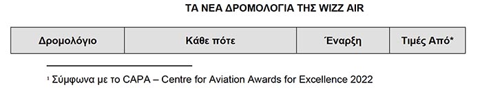 Η WIZZ AIR ανακοινώνει τρία νέα δρομολόγια απο τον Διεθνή Αερολιμένα Αθηνών