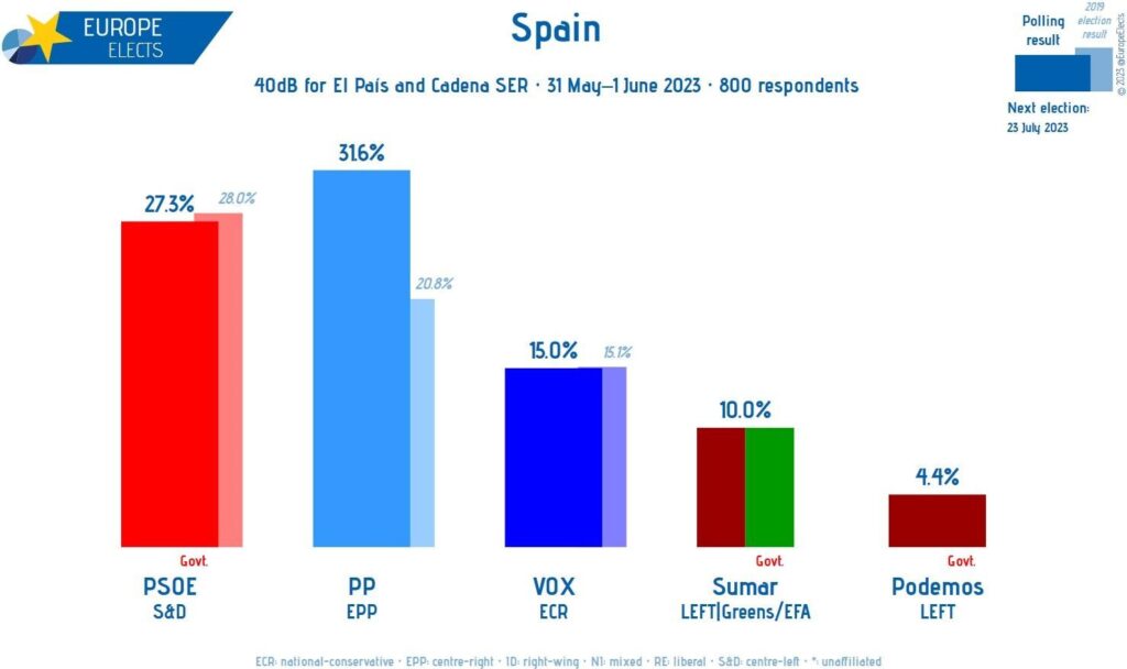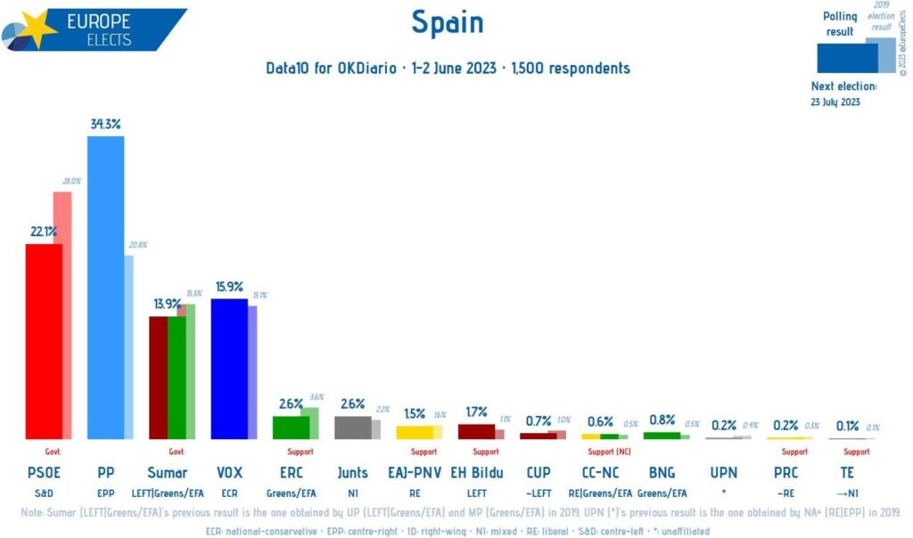 Αυτές οι εκλογές, αν και σύμφωνα με αναλυτές θα διεξάγονταν τον Νοέμβριο ή τον Δεκέμβριο, επισπεύστηκαν για τις 23 Ιουλίου από τον θορυβημένο από το εκλογικό αποτέλεσμα Ισπανό Πρωθυπουργό Πέδρο Σάντσεθ λόγω της απώλειας στρατηγικών εκλογικών στόχων. Το σοσιαλδημοκρατικό κόμμα PSOE, του οποίου ηγείται, δεν υπέστη εκλογικές απώλειες και στις 10 Περιφέρειες όπου κυβερνούσε αυτοδύναμα ή από κοινού με τοπικά ή και αριστερά κόμματα, εντούτοις οι σύμμαχοί του αποδυναμώθηκαν τόσο, ώστε πέρασε στην αντιπολίτευση σε πολλές από αυτές.