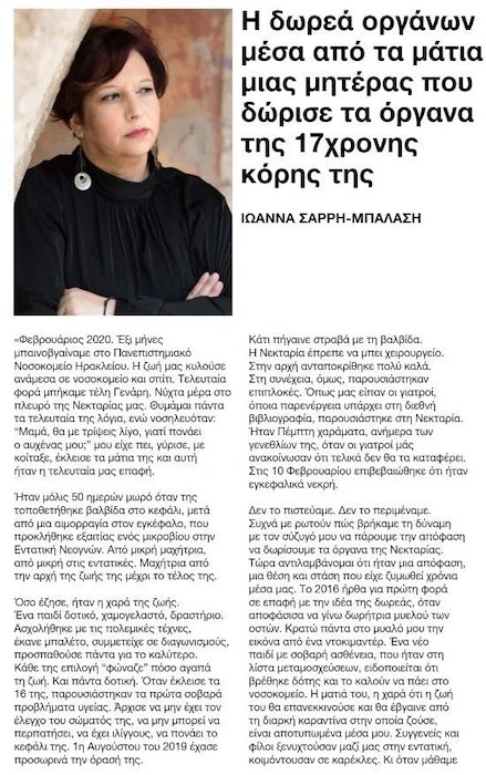 Μιλάει με μία ιδιότητα, που την καθιστά μοναδική ως άνθρωπο και ως πηγή πληροφόρησης: Είναι μία μητέρα που αποχαιρέτισε την 16χρονη κόρη της, όταν επιβεβαιώθηκε ότι η Νεκταρία ήταν εγκεφαλικά νεκρή, στις 10 Φεβρουαρίου 2020. Αν δεν μπορεί να μας πείσει εκείνη, τότε δεν μπορώ ούτε εγώ.