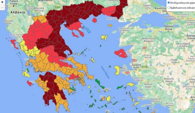 Κορονοϊός: Στο ‘βαθύ κόκκινο’ 16 περιφέρειες – Τρομάζει ο επιδημιολογικός χάρτης