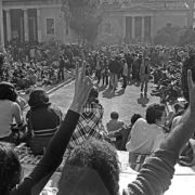 Αν κάτι ξηλώθηκε τη δεύτερη ημέρα, την Παρασκευή, αυτό ήταν οι τάβλες από τα σχεδιαστήρια της Αρχιτεκτονικής. Έγιναν φορεία για να μεταφερθούν στο ιατρείο, στον πρώτο όροφο του κτιρίου, οι τραυματισμένοι που έφταναν αδιάκοπα από τους γύρω δρόμους. Δύσκολο να ξεχάσω έναν νέο, ξαπλωμένο σε ένα τέτοιο αυτοσχέδιο φορείο, με το στήθος του βαμμένο στο αίμα, κι εκείνος να υψώνει το χέρι κάνοντας το σήμα της νίκης, ενώ οι σφαίρες σφύριζαν και ο αέρας είχε γίνει θολός από τα δακρυγόνα. Ποιος ήταν; Πού κατέληξε εκείνη τη νύχτα; Έζησε; Μίλησε; Θυμάται αυτή τη χειρονομία του;