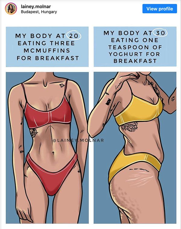 Σε μια κοινωνία που ανέκαθεν περίμενε από τους καλλιτέχνες να φέρουν την αλλαγή, αυτόν τον ρόλο έρχεται να παίξει για εμάς Lainey Molnar με τον λογαριασμό της στο Instagram να περιλαμβάνει ποστ με όσα οι γυναίκες θεωρούμε αυτονόητα, προσπαθώντας παράλληλα να αποδείξουμε πως δεν είμαστε ελέφαντες.