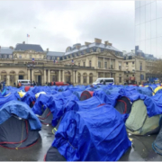 Εκατοντάδες μετανάστες έχουν κατασκηνώσει από την Παρασκευή στην πλατεία κοντά στο εμβληματικό Μουσείο του Λούβρου στην καρδιά του Παρισιού, ζητώντας καταλύματα έκτακτης ανάγκης. Οι διαμαρτυρόμενοι, κυρίως νεαροί άνδρες από αφρικανικές χώρες, δηλώνουν ότι, καθώς ο χειμώνας πλησιάζει, δεν μπορούν πλέον να επιβιώσουν στους δρόμους.
