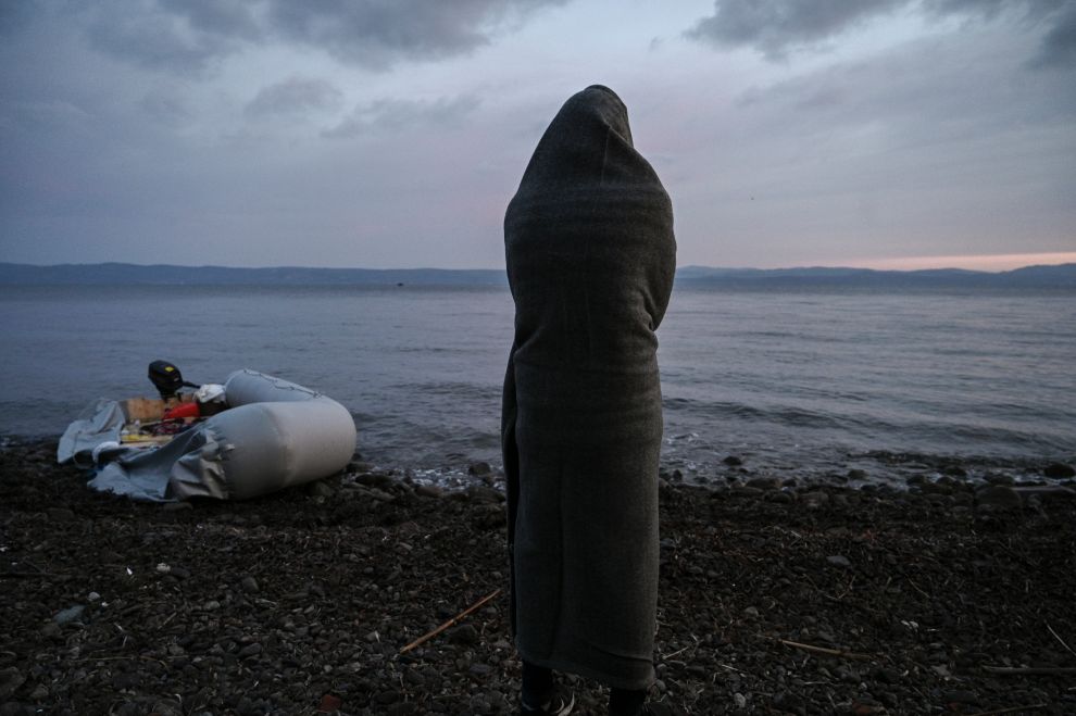 Refugees and migrants arrive in Lesbos island after being rescued from a war ship on March 1, 2020.