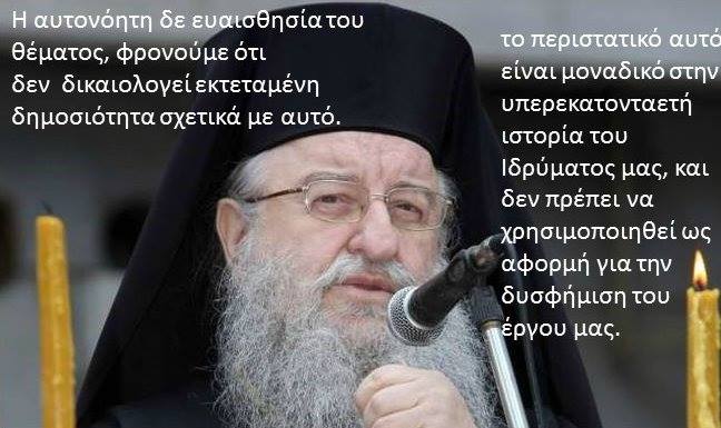 Ένα σημείο της δήλωσης του Μητροπολίτη Άνθιμου λέει: «το περιστατικό αυτό είναι μοναδικό στην υπερεκατονταετή ιστορία του Ιδρύματος μας, και δεν πρέπει να χρησιμοποιηθεί ως αφορμή για την δυσφήμιση του έργου μας». Αυτό που διαπιστώνει κανείς είναι ότι αυτό που φοβούνται είναι η δυσφήμιση και όχι τα ανεξίτηλα τραύματα του παιδιού. Ένα συχνό φαινόμενο σε αυτές τις περιπτώσεις όπου το θύμα τοποθετείται σε δεύτερη κατηγορία μιας και στην πρώτη βρίσκεται η δυσφήμιση του ιδρύματος.