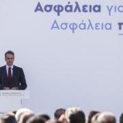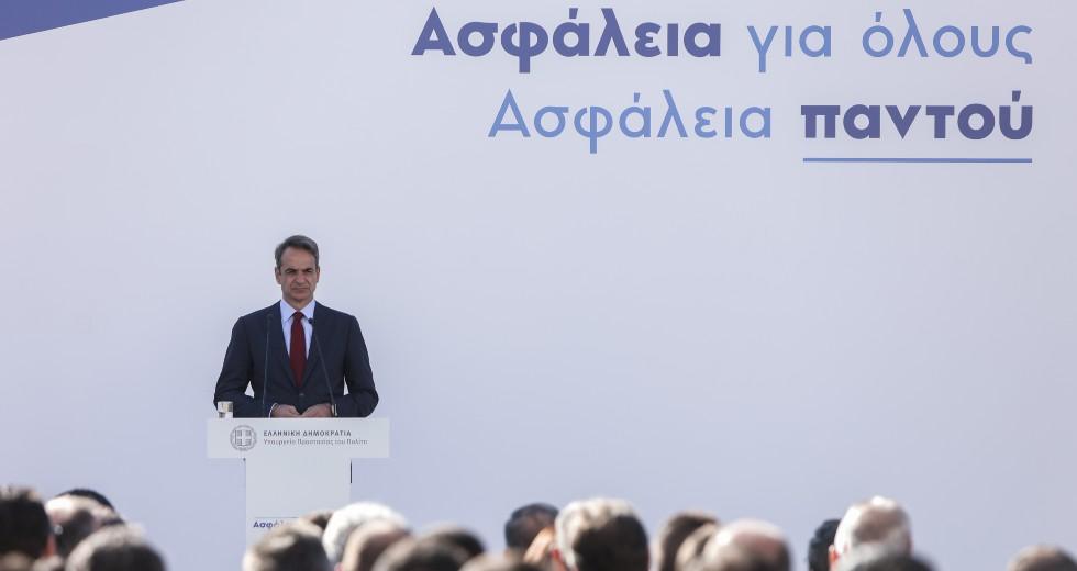«Ασφάλεια για όλους, ασφάλεια παντού», ήταν το σύνθημα που υπήρχε πίσω από το πόντιουμ όπου μίλησε ο κ. Μητσοτάκης. Ο πρωθυπουργός επέλεξε να βρεθεί και να μιλήσει σε εκδήλωση του υπουργείου Προστασίας του Πολίτη για την ασφάλεια και τη μείωση της εγκληματικότητας, στην πρώην Σχολή Αξιωματικών της Ελληνικής Αστυνομίας, όπου δεν παρέλειψε να πλέξει το εγκώμιο των αστυνομικών οργάνων για τη δράση τους.