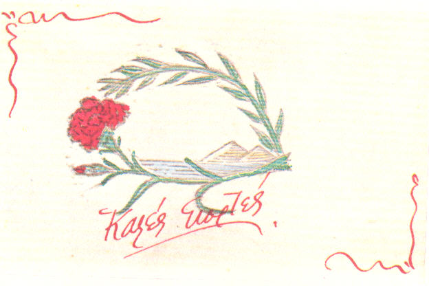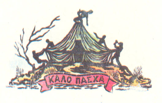 Όμως τα πολλά λόγια είναι φτώχεια. Στις εικόνες που ακολουθούν θα δούμε γιορταστικές και πασχαλιάτικες κάρτες (ένα μέρος από αυτές που περιέχει το βιβλίο) που φιλοτέχνησαν φυλακισμένοι και εξόριστοι (στην πλειοψηφία τους γυναίκες), από διαφορετικά σημεία της Ελλάδας.