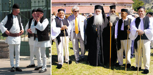Δεξιά: Βλάχοι τής Ελλάδας φωτογραφίζονται με ιερείς και έναν ομοεθνή τους πολιτικάντη.