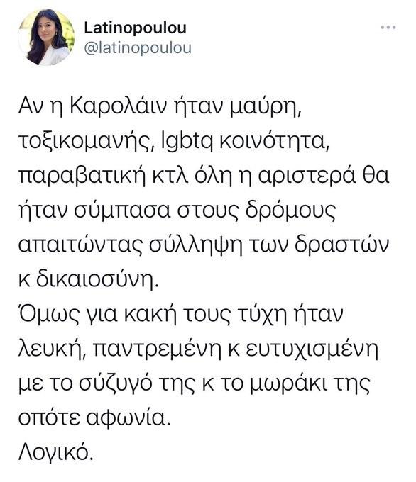 Η δολοφονία της Κάρολαϊν Κράουτς στα Γλυκά Νερά είχε προκαλέσει έντονα συναισθήματα στη συντριπτική πλειοψηφία της κοινής γνώμης. Κάποιοι όμως, έχοντες βήμα στον δημόσιο διάλογο, δεν είδαν ένα αποτρόπαιο έγκλημα, αλλά μία ευκαιρία για ιδεολογικό «αγώνα» ξενοφοβίας και ρατσισμού.