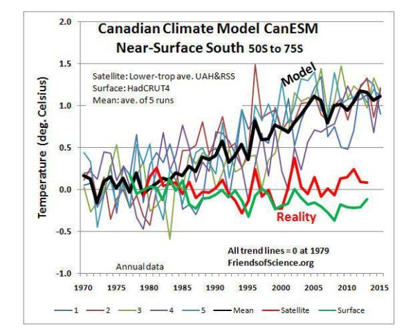 Τα μοντέλα έχουν ακυρωθεί όχι μόνο από τις μετρήσεις (εικόνα 6), αλλά και από το γεγονός ότι όλες οι προβλέψεις τους έχουν πέσει πολύ έξω. Υπήρχε πρόβλεψη του καθηγητή James Hansen στην Βουλή των Αντιπροσώπων των ΗΠΑ στα μέσα του 1980 ότι η Νέα Υόρκη το 2010 θα βρισκόταν δύο μέτρα κάτω από την θάλασσα.