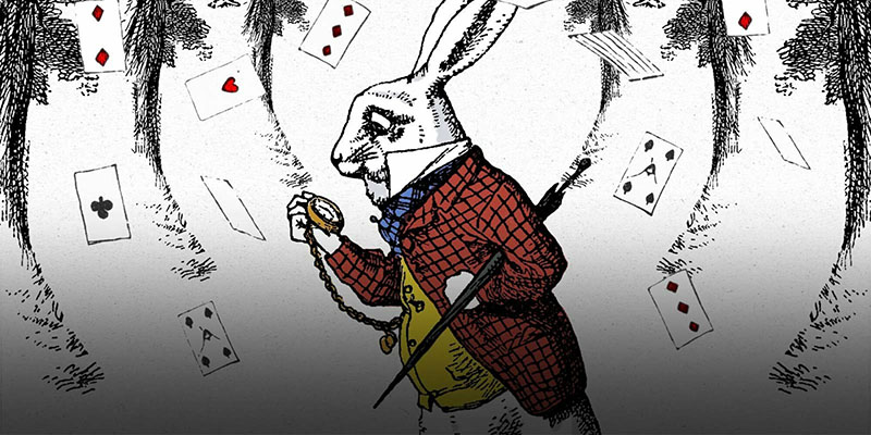 προχωρούσε ολόισια σαν σήραγγα, όμως σε λίγο έπαιρνε απότομα να βαθαίνει, τόσο απότομα που, προτού καν η Αλίκη προλάβει να σκεφτεί να σταματήσει, βρέθηκε να πέφτει μέσα σε κάτι που έμοιαζε να ’ναι ένα πολύ βαθύ πηγάδι. Ή το πηγάδι ήταν τρομερά βαθύ ή εκείνη έπεφτε τρομερά αργά, μια και είχε όλον τον καιρό στη διάθεσή της, καθώς έπεφτε να ρίχνει ματιές γύρω της και να διερωτάται σαν τι άλλο επρόκειτο να της συμβεί [….] Βαθιά, ολοένα βαθύτερα. Δεν θα τέλειωνε καμιά φορά αυτό το πέσιμο! “Αναρωτιέμαι πόσα χιλιόμετρα να διέτρεξα ως τώρα πέφτοντας”, είπε δυνατά. “Θα πρέπει να πλησιάζω κάπου στο κέντρο της Γης”» (Οι περιπέτειες της Αλίκης στη Χώρα των Θαυμάτων, Lewis Carroll, μτφρ. Μένης Κουμανταρέας, εκδόσεις Πατάκης). Στο βιβλίο του Lewis Carroll που κυκλοφόρησε το 1865, η μικρή Αλίκη δραπετεύει στη Χώρα των Θαυμάτων ή του Παραδόξου, εκεί όπου βασιλεύει, όπως σημειώνει ο Κουμανταρέας, το Παράλογο ή το Παρανοϊκό, ο χρόνος είναι εύπλαστος ‒ σταματά και ξαναρχίζει, όπως και η ίδια η Αλίκη, που σε ένα μόλις δευτερόλεπτο γίνεται μικροσκοπική και αμέσως μετά πανύψηλη και παραμορφωμένη. Το βιβλίο, που είναι ίσως το διασημότερο παιδικό βιβλίο του εικοστού αιώνα, και που, όπως είπε χαρακτηριστικά η Βιρτζίνια Γουλφ, «δεν είναι παιδικό βιβλίο αλλά είναι το μοναδικό με το οποίο γινόμαστε παιδιά», μιλάει πολύ για τον χρόνο σε ένα κόσμο μεταξύ ονείρου και πραγματικότητας.