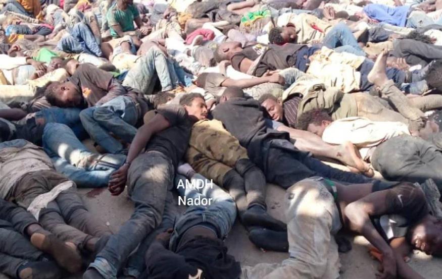 Σε τουλάχιστον 23 νεκρούς και δεκάδες τραυματίες ανέρχεται ο απολογισμός των επεισοδίων την Παρασκευή κατά την προσπάθεια εκατοντάδων μεταναστών να περάσουν τα σύνορα από το Μαρόκο προς την Ισπανία στην Μελίγια. Οι εικόνες και οι μαρτυρίες από το σημείο είναι συγκλονιστικές. Δεκάδες τραυματίες είναι σχεδόν ο ένας πάνω στον άλλο στο έδαφος, πολλοί αιμορραγούν, άλλοι είναι βαριά, κάποιοι δεν δείχνουν σημάδια ζωής. Ανάμεσά τους στέκονται Μαροκινοί αστυνομικοί.
