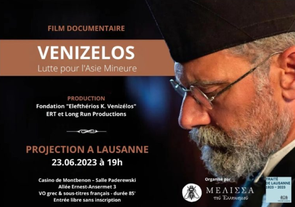 Την Παρασκευή 23 Ιουνίου προβλήθηκε στην Λωζάννη της Ελβετίας, με γαλλικούς υπότιτλους, το δραματοποιημένο ντοκιμαντέρ «ΒΕΝΙΖΕΛΟΣ, αγώνας για τη Μικρά Ασία» παραγωγής του Εθνικού Ιδρύματος «Ελευθέριος Κ. Βενιζέλος, της ΕΡΤ και της Long Run Productions.