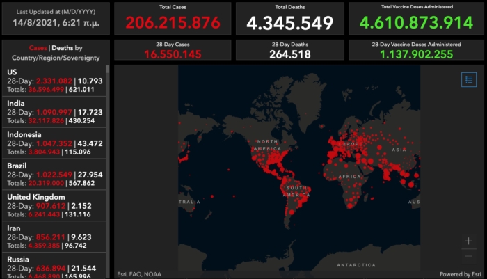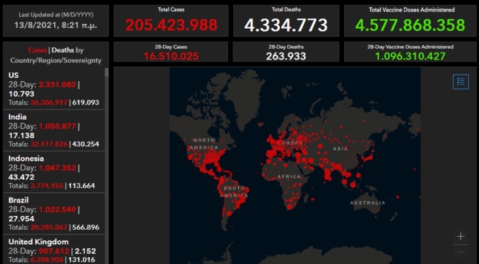 Συνεχίζεται με αμείωτη ένταση η πανδημία στον κόσμο