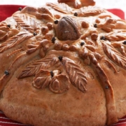 Από τις πιο χαρακτηριστικές προετοιμασίες της παραμονής των Χριστουγέννων το ζύμωμα του χριστόψωμου. Κατά τόπους φτιάχνεται σε διάφορες μορφές και έχει διαφορετικές ονομασίες όπως: “το ψωμί του Χριστού”, “Σταυροί”, “βλάχες” κ.ά.” Τα χριστόψωμα, αποτελούν το βασικό ψωμί των Χριστουγέννων και το ευλογημένο, αφού αυτό θα στηρίξει τη ζωή του νοικοκύρη και της οικογένειάς του. Το ζύμωμα είναι μια ιεροτελεστία. Χρησιμοποιούν ακριβά υλικά, ψιλοκοσκινισμένο αλεύρι, ροδόνερο, μέλι, σουσάμι, κανέλα και γαρίφαλα, λέγοντας: “Ο Χριστός γεννιέται , το φως ανεβαίνει, το προζύμι για να γένει.” Πλάθουν το ζυμάρι και παίρνουν τη μισή ζύμη και φτιάχνουν μια κουλούρα. Με την υπόλοιπη φτιάχνουν σταυρό με λουρίδες απ΄ τη ζύμη. Στο κέντρο βάζουν ένα άσπαστο καρύδι. Στην υπόλοιπη επιφάνεια σχεδιάζουν σχήματα με το μαχαίρι ή με το πιρούνι, όπως λουλούδια , φύλλα, καρπούς, πουλάκια.