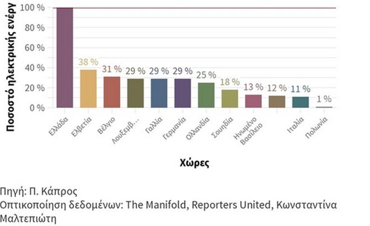 Ποσοστό της ημερήσιας κατανάλωσης ηλεκτρικού ρεύματος που διακινείται στη spot αγορά ανά χώρα