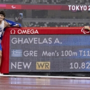 Ο Θανάσης Γκαβέλας χάρισε στην Ελλάδα το πρώτο της χρυσό μετάλλιο στους Παραολυμπιακούς Αγώνες του Τόκιο. Ο 22χρονος αθλητής, μαζί με τον συνοδό του Σωτήρη Γκαραγκάνη, κατέκτησαν την πρώτη θέση στον τελικό των 100μ. κατηγορίας Τ11 με χρόνο 10.82, βελτιώνοντας μάλιστα το παγκόσμιο ρεκόρ που είχαν σημειώσει στον χθεσινό (1/9) προκριματικό με 10.88.